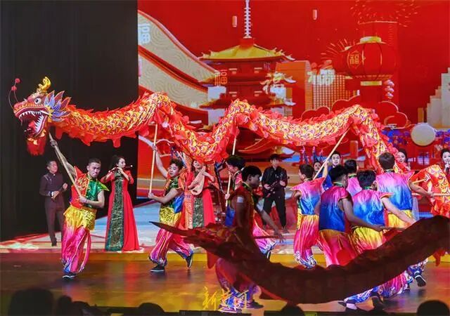 现场,演员们精妙绝伦的技艺、个性鲜明的唱腔,获得观众的阵阵喝彩。尤其是开场节目戏歌《龙的传人》,两支舞龙队伍在灯光亮起后出现在观众席旁,点燃全场激情。